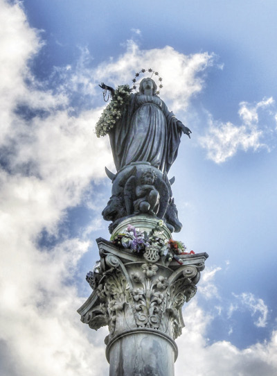 La refulgente corona de gloria con que el Señor ciñó la frente purísima de la Virgen Madre de Dios nos parece verla resplandecer con mayor brillo al recordar el día en que, hace cien años, nuestro predecesor, de feliz memoria, Pío IX, rodeado de imponente número de cardenales y obispos, con autoridad infalible declaró, proclamó y definió solemnemente que “ha sido revelada por Dios y, por lo tanto, debe ser creída con fe firme y constante por todos los fieles la doctrina que sostiene que la Santísima Virgen María, desde el primer instante de su concepción, por singular gracia y privilegio de Dios Todopoderoso, fue preservada inmune de cualquier mancha del pecado original, en vista de los méritos de Cristo Jesús, Salvador del género humano”. La Iglesia Católica entera recibió con alborozo la sentencia del Pontífice, que desde hacía tiempo esperaba con ansia, y reavivada con esto la devoción de los fieles hacia la Santísima Virgen, que hace florecer en más alto grado las virtudes cristianas, adquirió nuevo vigor y asimismo cobraron nuevo impulso los estudios con los que la dignidad y santidad de la Madre de Dios brillaron con más grande esplendor. Y parece como si la Virgen Santísima hubiera querido confirmar de una manera prodigiosa el dictamen que el Vicario de su divino Hijo en la tierra, con el aplauso de toda la Iglesia, había pronunciado. Pues no habían pasado aún cuatro años cuando cerca de un pueblo de Francia, en las estribaciones de los Pirineos, la Santísima Virgen, vestida de blanco, cubierta con cándido manto y ceñida su cintura de faja azul, se apareció con aspecto juvenil y afable en la cueva de Massabielle a una niña inocente y sencilla, a la que, como insistiera en saber el nombre de quien se le había dignado aparecer, Ella, con una suave sonrisa y alzando los ojos al cielo, respondió: “Yo soy la Inmaculada Concepción”.